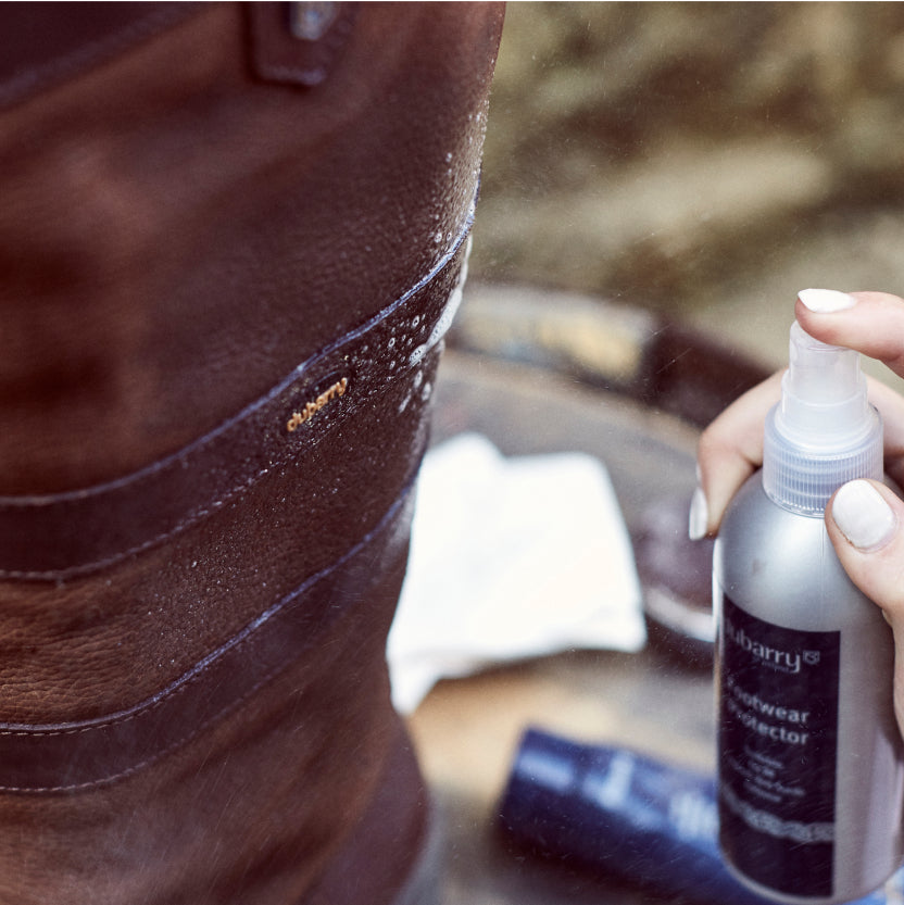Applying Dubarry Footwear Protector restores the water repellency of the leather.