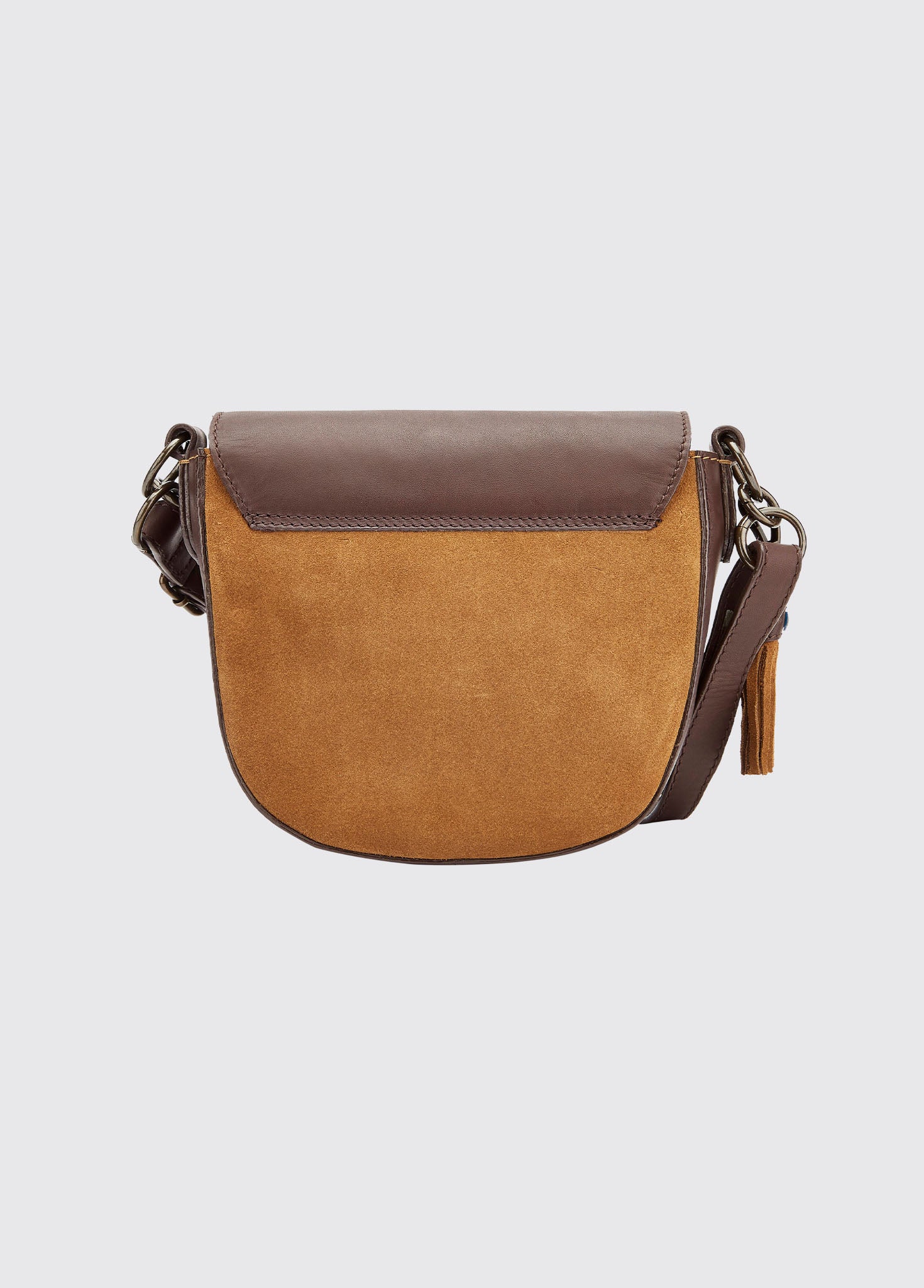 Small leather and suede saddle bag with a adjustable cross body strap and detachable tassel key ring. Available in a choice of colours.