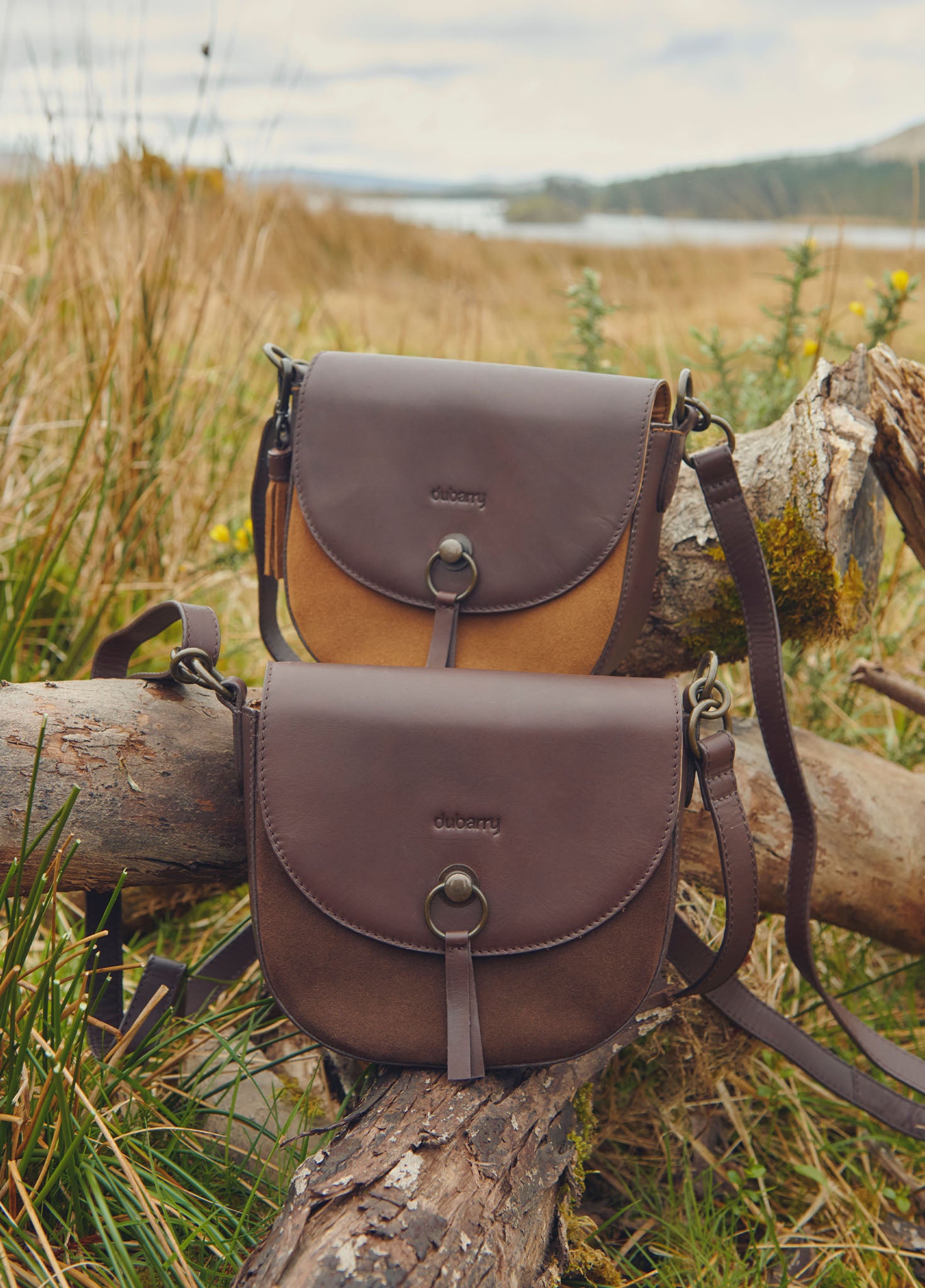 Small leather and suede saddle bag with a adjustable cross body strap and detachable tassel key ring. Available in a choice of colours.