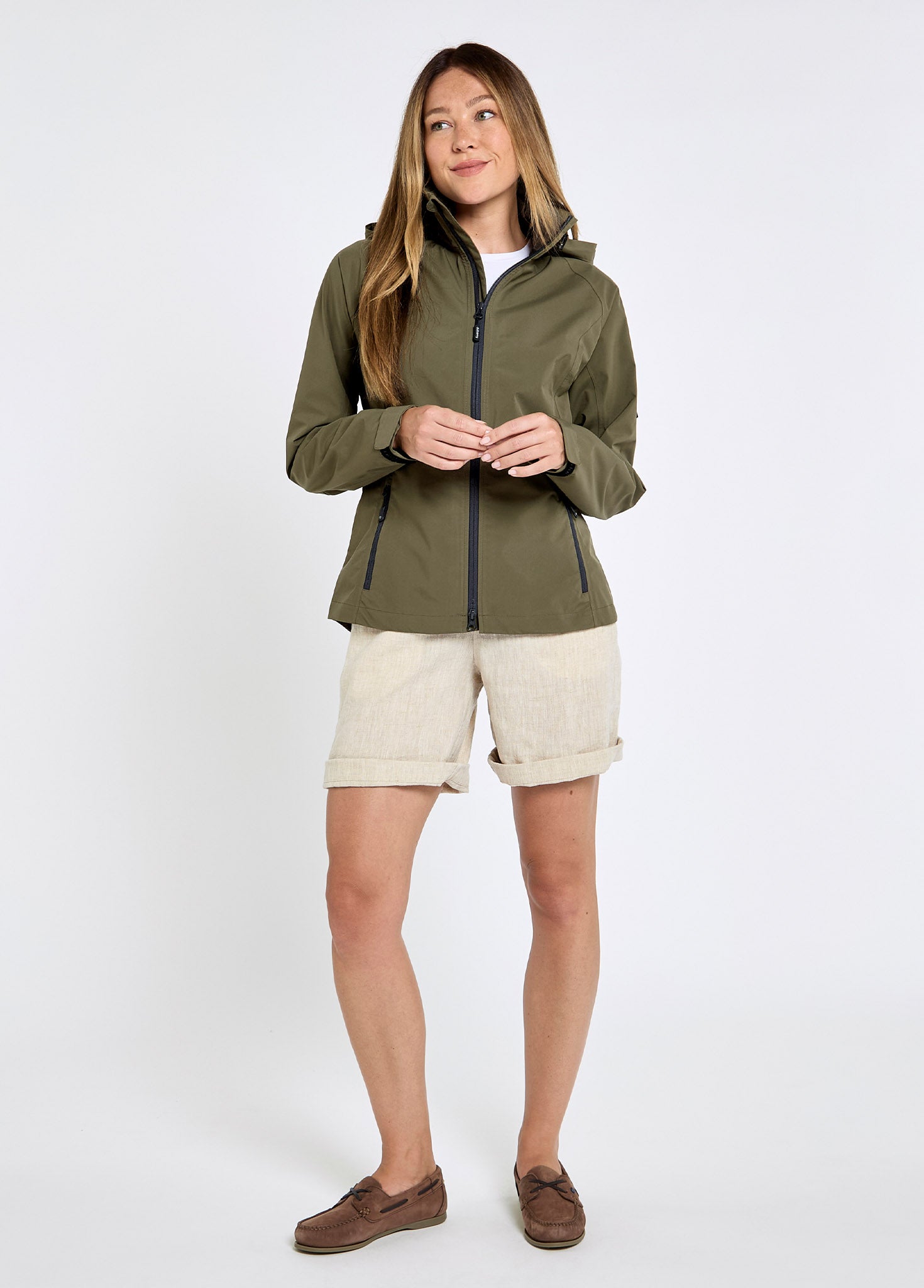 Our Seamills waterproof jacket is the ideal summer raincoat. The lightweight structure still retains a fitted, feminine shape, with a nipped waist and dropped hem at the back. A durable water repellent finish combined with taped seams keeps rain and spray firmly on the outside while straying breathable. In simple Navy or Kelp options, whether you’re dodging spring showers or need a light ‘in case layer” in your weekend packing, this is the contemporary waterproof for you.